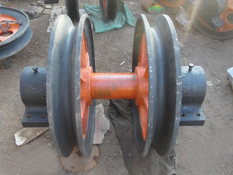 3、雙槽懸吊天輪采用繩輪與軸承座可調型式,使用時根據實際情況進行選用,還可根據情況,另行組合設計,可不受規定品種和可調。